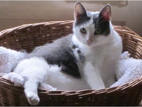 Azaleakönhonafödd 2010-09färgblå och vitAzalea och hennes syskon föddes på en bakgård i Landskrona. De levde i en kattkoloni och blev matade men hade inte mycket skydd för väder och vind. Ingen tänkte på att katterna i kolonin behövde kastrerad så de blev fler och fler och började fara illa. Kommunen ville inte ingripa på annat sätt än med avskjutning. Snälla människor ingrep och Azalea och hennes syskon fångades in en efter en. Nu bor Azalea i ett av Katthjälpens jourhem. Hon blir klappad varje dag och med rätt kunskap och träning kommer de alla att bli trygga och tama katter och finna egna hem.Kastrerad, id-märkt och vaccinerad genom Katthjälpen