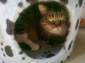 Manjakönhonafödd 2008färgbruntigré med vittManja kom till katthemmet när hon inte ens var året fyllda. Hon hade levt under förfärliga förhållanden under sin uppväxt, i ett smutsigt hem med alldeles för många katter. Hon var rädd och försiktig när hon blev omhändertagen av Katthjälpen med fann strax livets goda sidor: massor av leksaker och lekkompisar, mat så mycket man vill ha och ren toalåda varje dag. Nu trivs Manja!Kastrerad, id-märkt och vaccinerad genom Katthjälpen