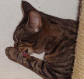 Muffinkönhonafödd 2007färgbruntigréMuffin levde med sina små syskon bakom en kiosk vid Mariedalsvägen i Malmö. De satt i buskarna och hoppades på mat ifrån förbipasserande eller matrester ifrån kiosken. Katthjälpen kontaktade och de blev infångade. Nu har Muffin vuxit sig stor och vacker och bor i ett av Katthjälpens jourhem. Hon ligger gärna i en korg och myser med sin kompis Orianna, som också är Katthjälpenkatt, eller så sitter hon i fönstret och tittar ut på fåglarna. Det hårda livet ute är sedan länge bortglömt.Kastrerad, id-märkt och vaccinerad genom Katthjälpen