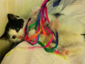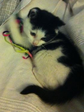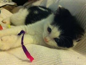 Stellankönhanefödd 2011-10färgvit och svartStellan föddes av en tam och utslängd katthona i ett bostadsområde i Malmö. Kattmatare höll honom och mamman vid liv med mat en gång om dagen, medan det blev kallare och kallare ute.Så en dag i december gick en Katthjälpare förbi och upptäckte den lilla familjen. Hjälp tillkallades och Stellan bereddes plats på katthemmet. En kväll, efter några timmars väntande dök lilla Stellan upp och lät sig fångas. Lite läskigt var det att komma till ett nytt ställe, så Stellan kröp gärna ihop och gömde sig sådär i början. Men Katthjälparna lockade snabbt fram hans keliga och lekfulla sida.Några dagar efter fångades även Stellans bror Lotus och mamma Aurora in och fick flytta in i värmen på Katthjälpens katthem.Vaccinerad genom Katthjälpen